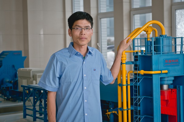 今年41岁的陆建东师傅,已经是华宏科技的一名老员工。1998年,刚刚19岁的陆建东进入华宏,被分配至安装车间从事设备总装。正当青春年华的陆建东,充满活力与干劲。工作中,他积极主动,充满热情。碰到疑难问题,他总是虚心请教,认真学习。从系统地了解产品的安装知识,再到技术上刻苦钻研,陆建东很快就掌握了液压设备的装配技术,在设备机械、液压、电气上均能独挡一面,能很好地完成各项装配任务。也因为如此,技术精湛的他成为安装车间的带班长。
